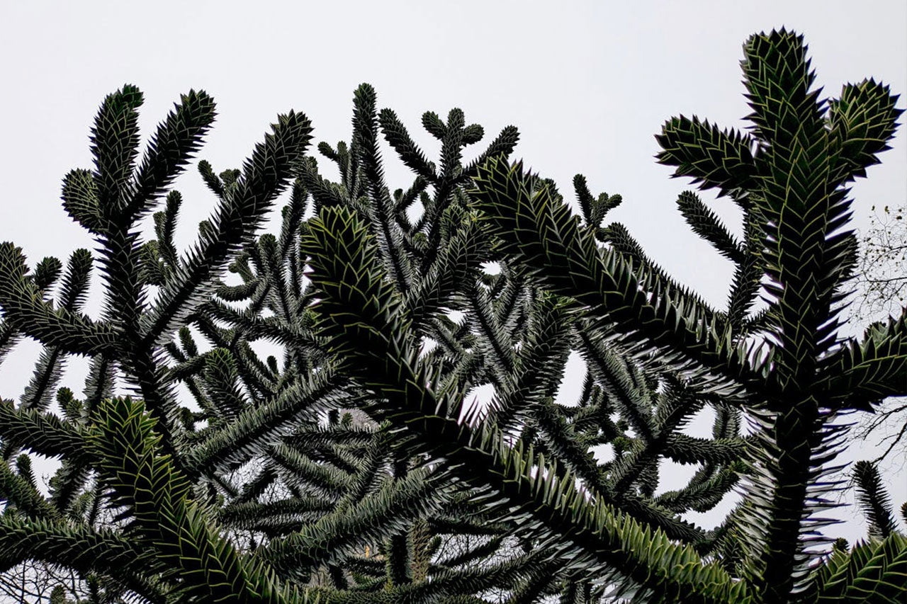 Monkey puzzle (Araucaria araucana) is one of those trees that always gets a reaction. Its strong, upright trunk, whorled branches and sharply geometric foliage give it a striking, almost sculptural quality that you simply don’t get from more ordinary conifers. Planted in the right place, it becomes a natural focal point, drawing the eye from inside the house as well as out in the garden. Even when nothing else much is happening – on a wet November afternoon or a frosty February morning – that bold, evergreen shape quietly earns its keep.