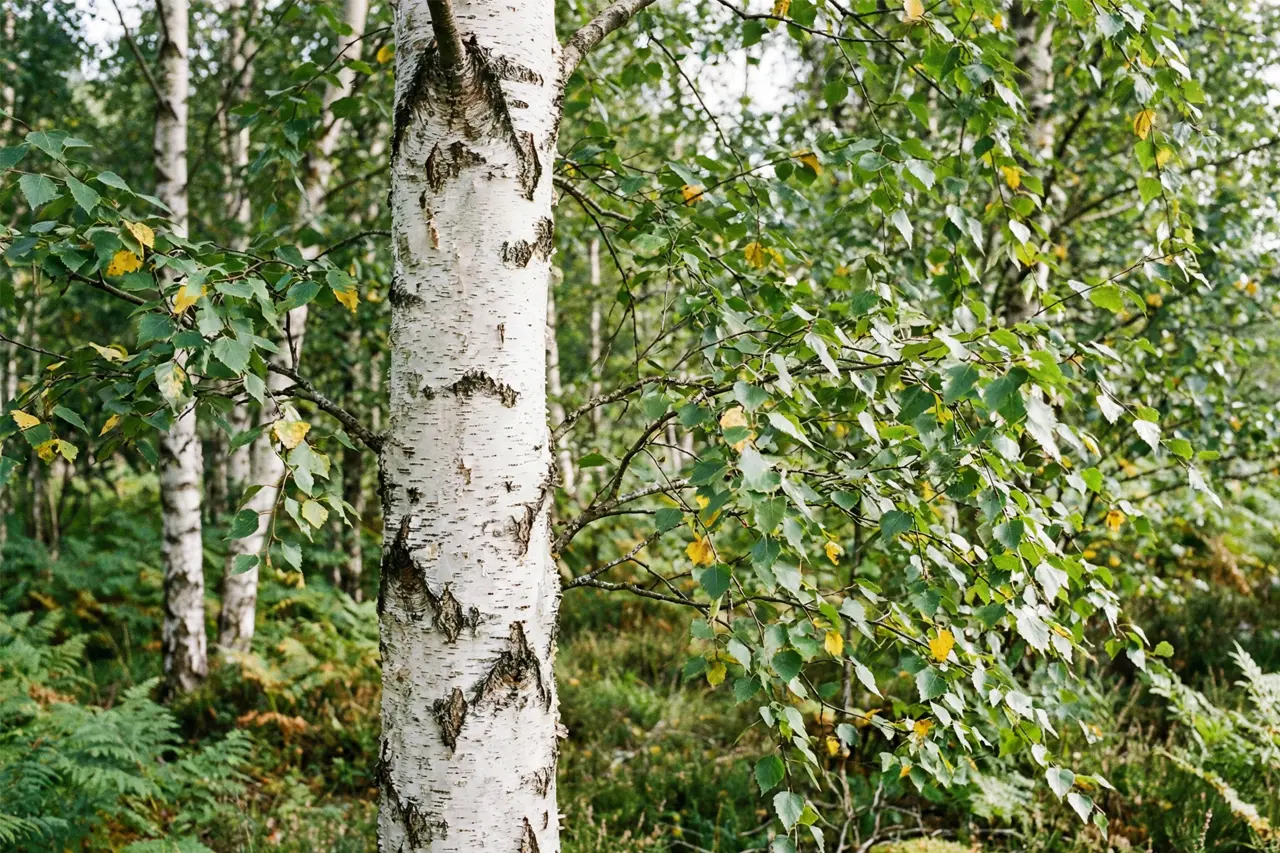 A silver birch with a more delicate, cut-leaf look that gives the whole tree a lacy, filigree texture. The airy canopy feels lighter and more ornamental than the straight species, making it a superb choice when you want the brightness of birch bark with extra finesse and detail.