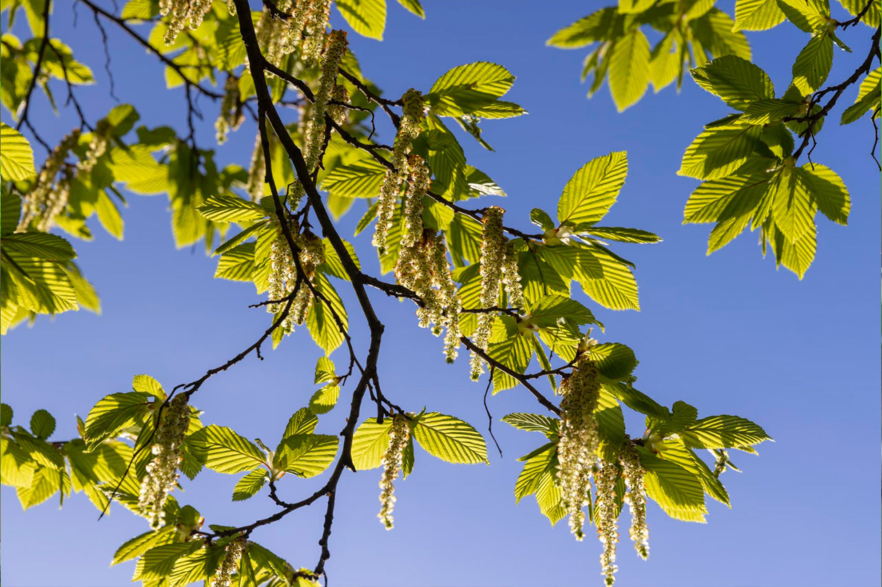 Flowering time: Spring catkins followed by winged seeds; main interest is fresh green foliage in spring and summer, plus warm autumn tints and retained brown leaves on hedges in winter.