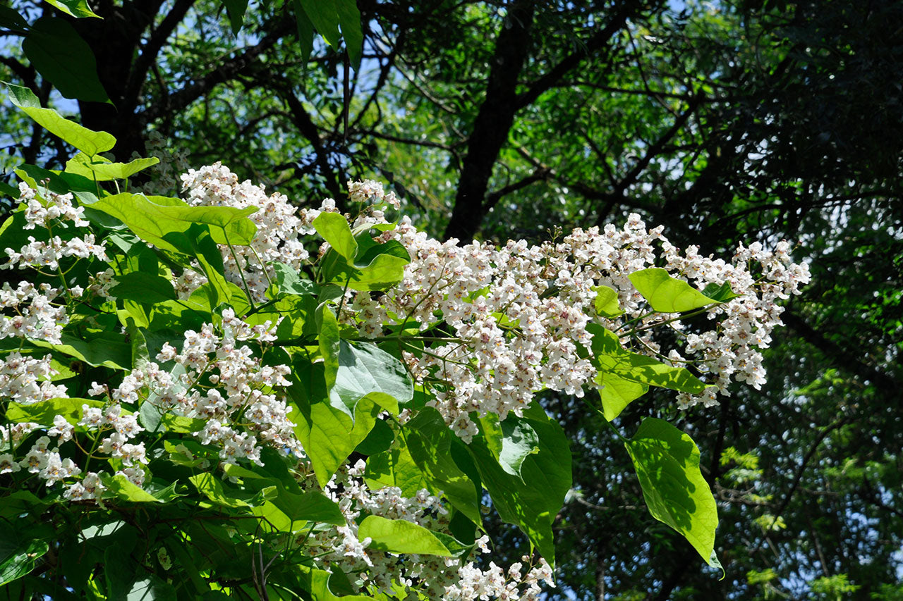 Flowering time: Large, showy panicles of white, foxglove‑like flowers in early to mid‑summer, followed by long, bean‑like pods that hang through autumn.