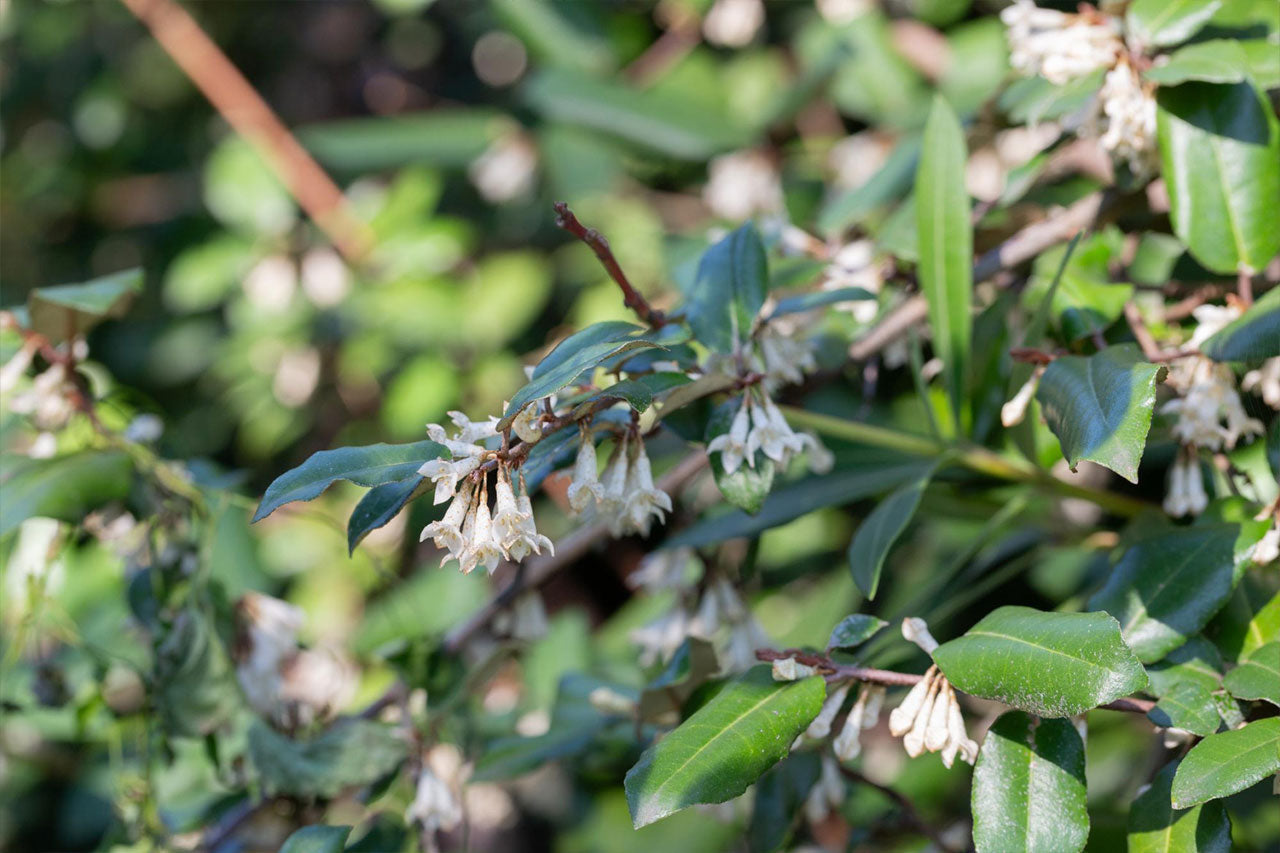 Main interest: Attractive evergreen foliage with silvery undersides, small but powerfully scented autumn flowers and, on some forms, orange or red berries.