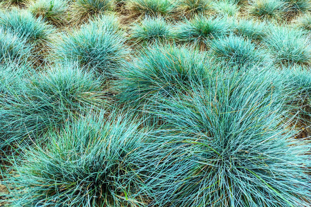 Ornamental fescue grasses form small, neat clumps of fine leaves that look like little domes or cushions scattered through the border. Depending on the variety, the foliage may be blue‑grey, steel‑blue, bright green or even variegated, but the overall effect is the same: a series of tidy hummocks that instantly make a planting look more intentional. In real UK gardens, where borders often end up a bit patchy, slipping a few Festuca plants in at the front or between perennials helps link everything together and gives year‑round structure with very little fuss.