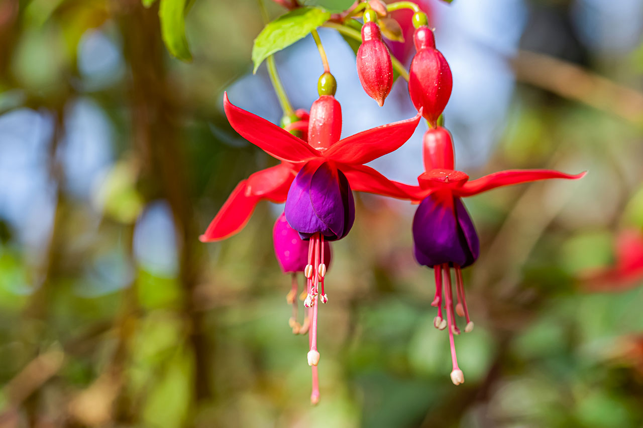 Fuchsias are easy to grow, performing best in moist, well-drained soil and a position that enjoys dappled sunlight or partial shade. Their extended flowering period and tolerance for cooler climates have made them a staple of British gardens. Whether used as a low-growing ground cover, a container feature, or part of a mixed border, fuchsias offer reliable colour and charm throughout the growing season.