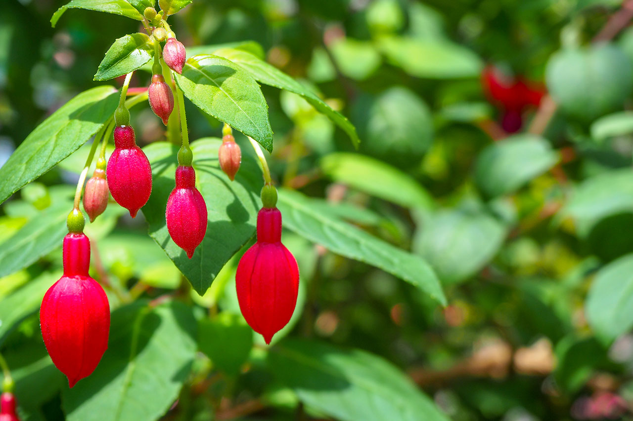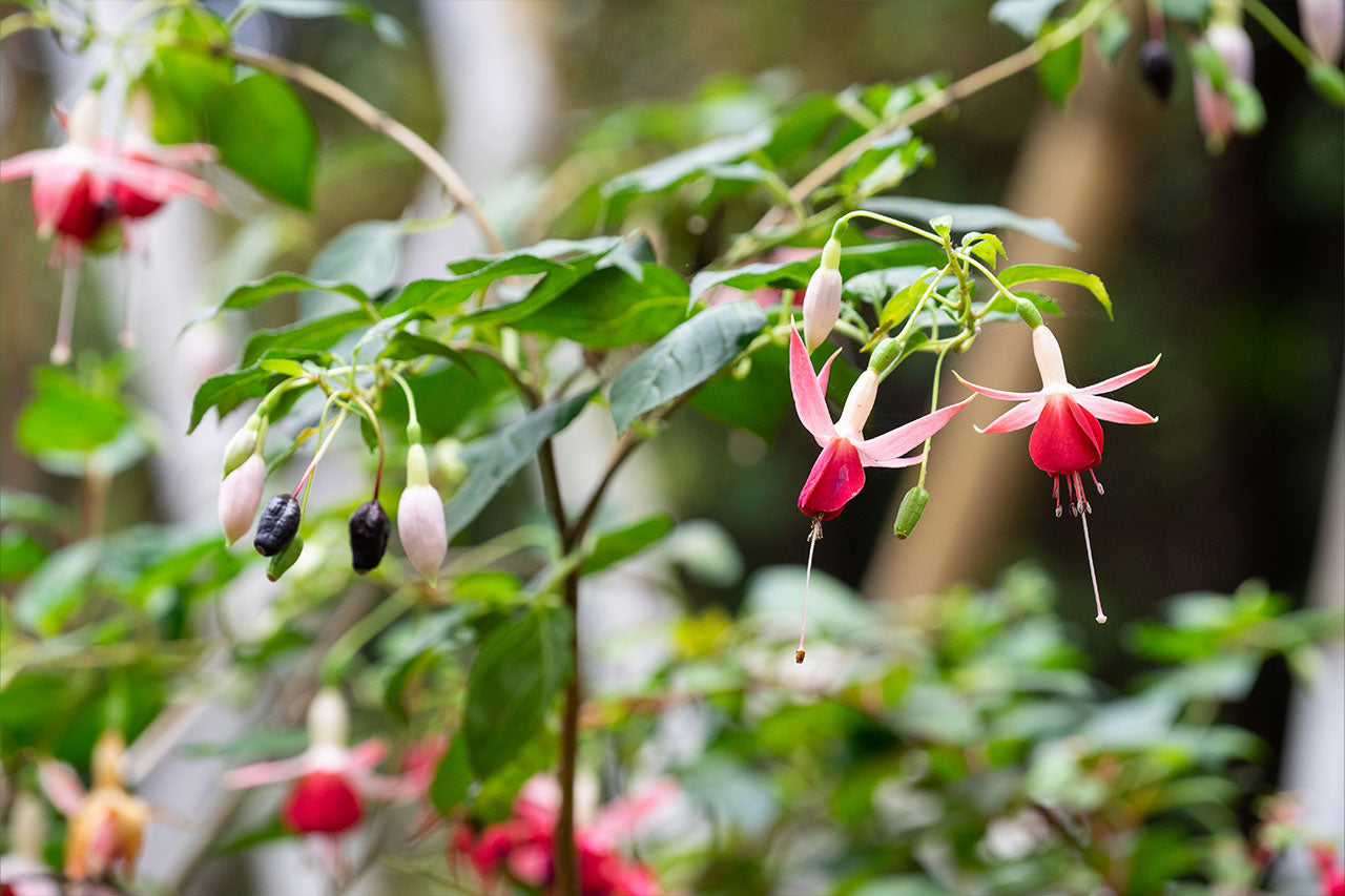Fuchsia shrubs are garden classics, celebrated for their dainty, pendant flowers that appear in abundance from late spring through autumn. These blooms, often in vivid combinations of pink, purple, red, and white, resemble delicate hanging lanterns, adding a bright, cheerful note to borders, containers, and hanging baskets. While some fuchsias have upright growth, others cascade gracefully, making them versatile choices for a variety of planting schemes.