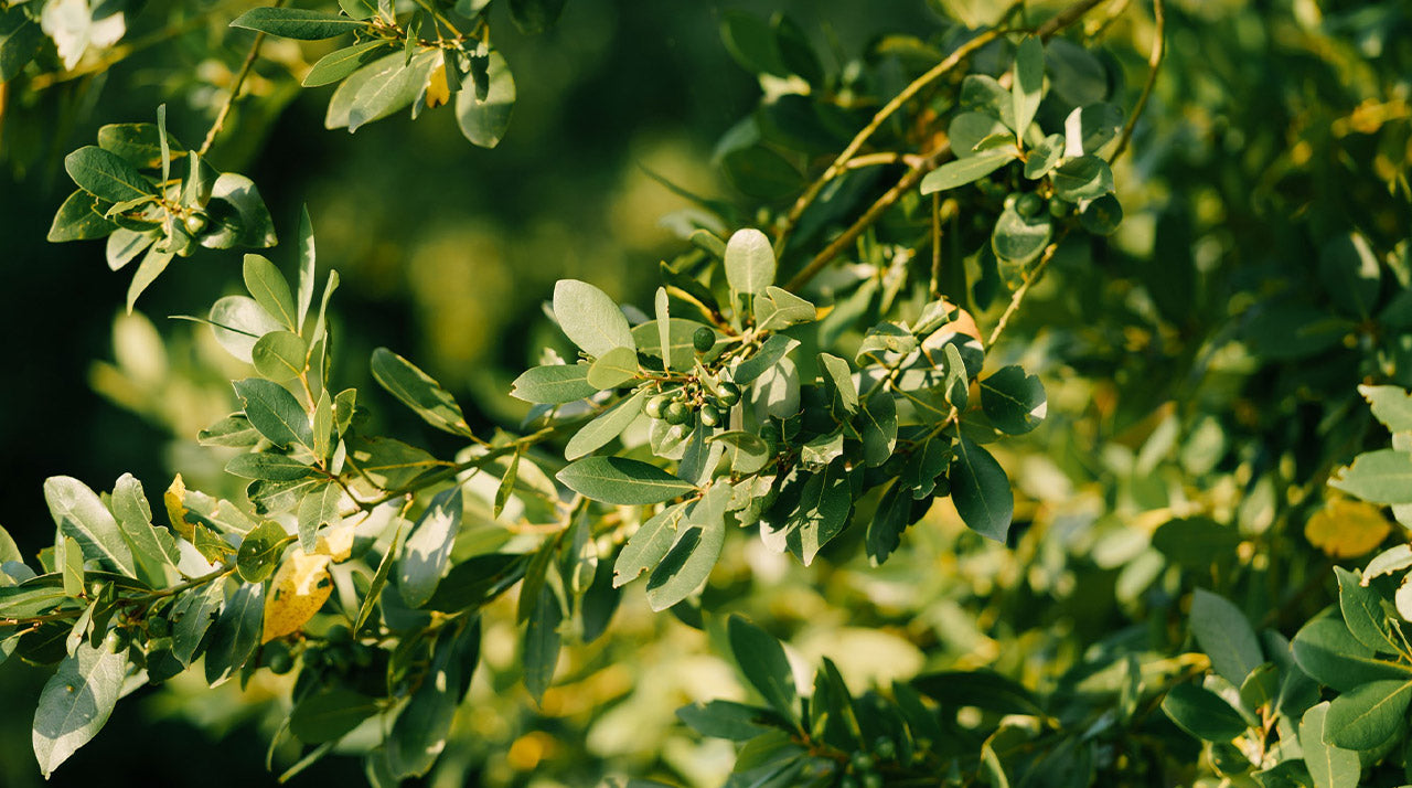 Main interest: Aromatic evergreen foliage for year‑round structure and the kitchen, with small spring flowers and, on female plants, dark berries later in the season.