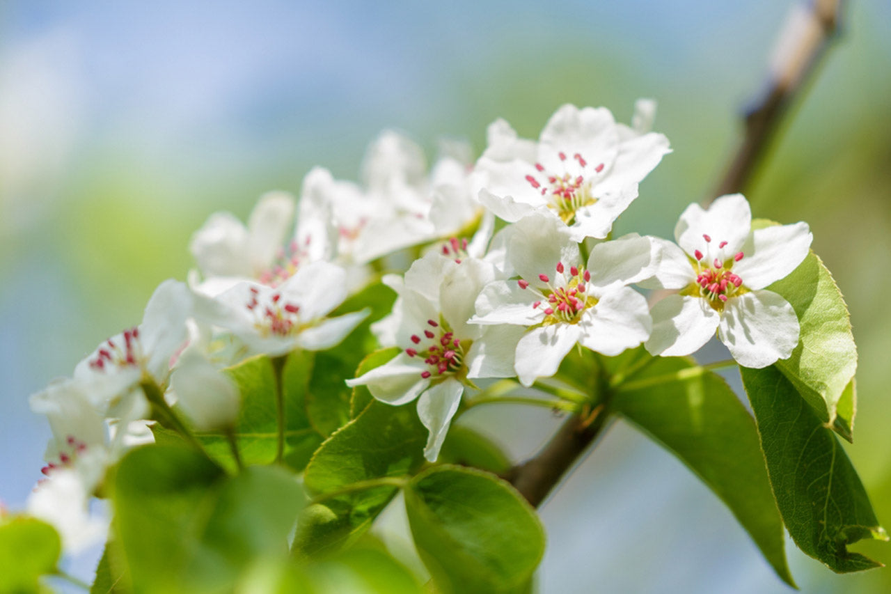Pear blossom has a clean, luminous quality — clusters of white flowers that open as the garden is just beginning to stir. It’s not showy in a loud way, but it’s generous, and it looks beautiful against a bright blue spring sky. In a UK garden, that moment matters: it lifts the whole space and brings pollinators in early. Even if you’re growing pear primarily for fruit, the blossom is a real bonus — a gentle, hopeful start to the season that makes the tree feel like part of the garden’s rhythm.