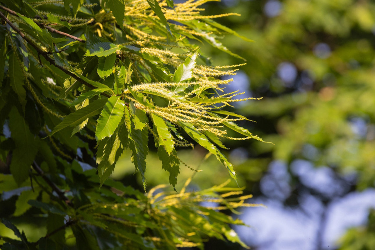 Sweet chestnut has that classic, “walk-through-the-woods” feeling — tall, sturdy, and quietly impressive. The leaves are long and glossy, with a bold, serrated edge that gives the canopy a strong texture from summer onwards. In a larger UK garden, it’s the kind of tree that changes the whole atmosphere, turning open space into something more settled and park-like. Even when it’s young, it has an upright confidence, and with time it becomes a genuine feature — the sort of tree you plan around rather than simply fit in.