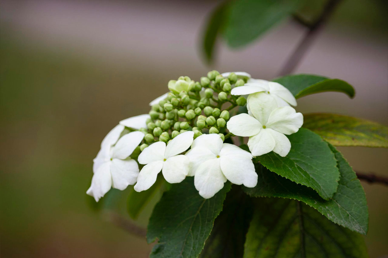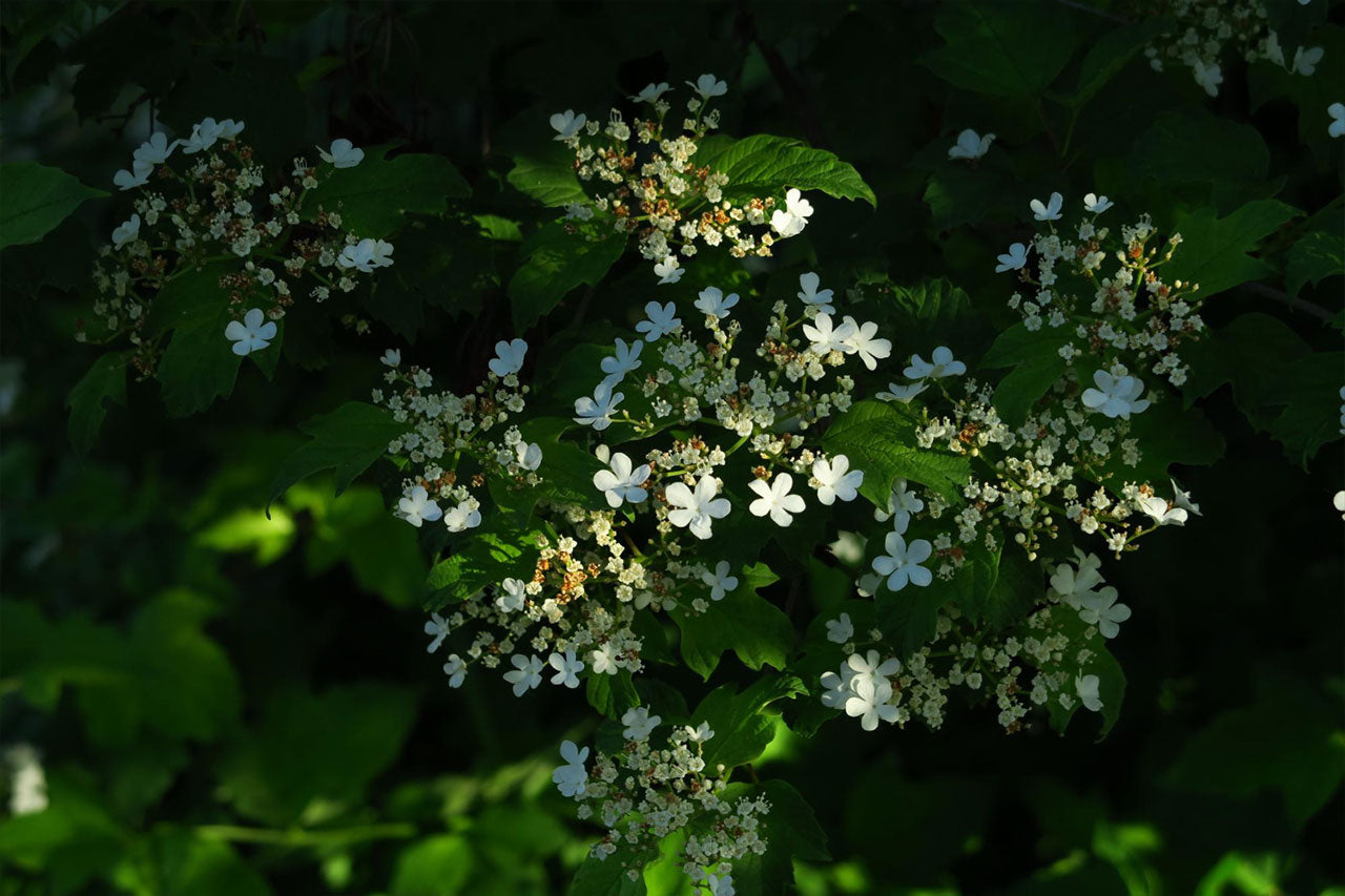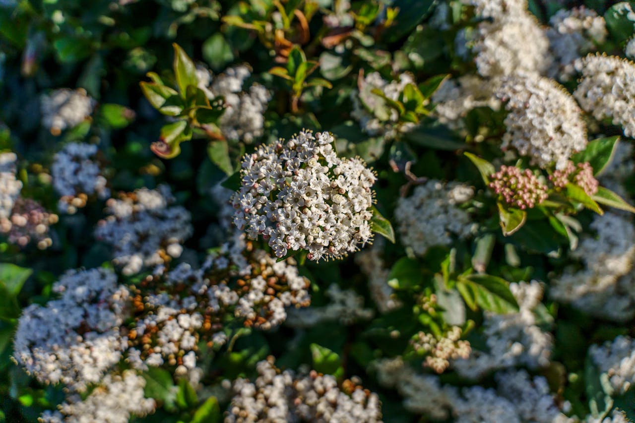 Viburnum is a diverse group of deciduous and evergreen shrubs known for their beautiful flowers, vibrant berries, and often stunning autumn foliage. In spring, many Viburnum varieties produce clusters of small, fragrant blooms in shades of white or pink, which attract bees and other pollinators. By late summer, these flowers give way to colourful berries—ranging from red and orange to deep blue or black—that persist into winter, providing both visual interest and a vital food source for birds. The foliage of some Viburnum varieties turns striking shades of red, orange, or purple in autumn, adding a seasonal highlight to the landscape.