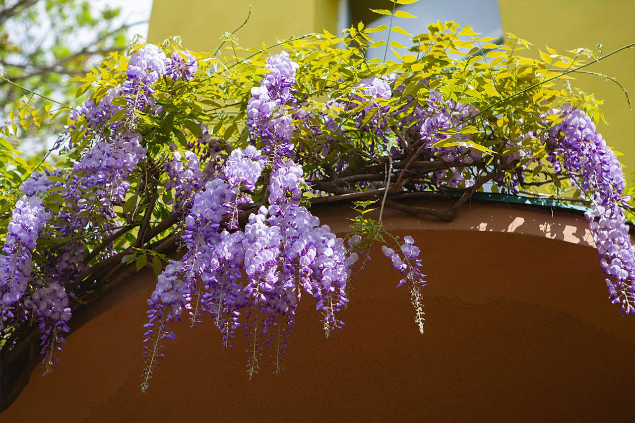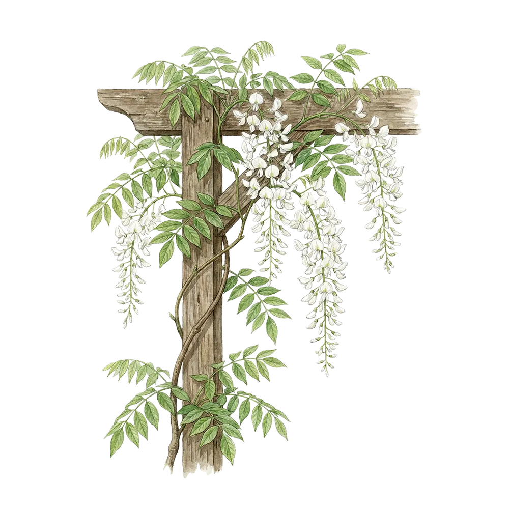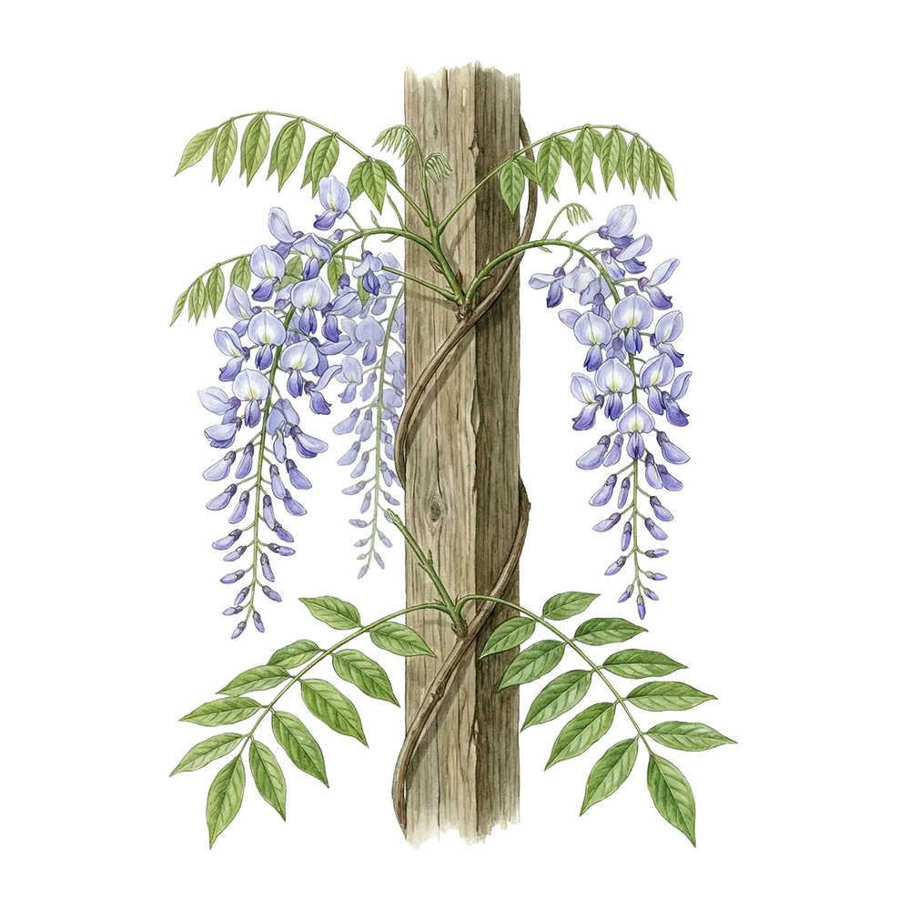 Feeding: Wisteria doesn’t need heavy feeding. A light, balanced fertiliser in early spring and an annual mulch of compost or well‑rotted manure around (but not against) the base are usually enough; avoid rich, high‑nitrogen feeds that promote leaf at the expense of flower.