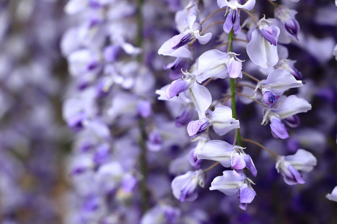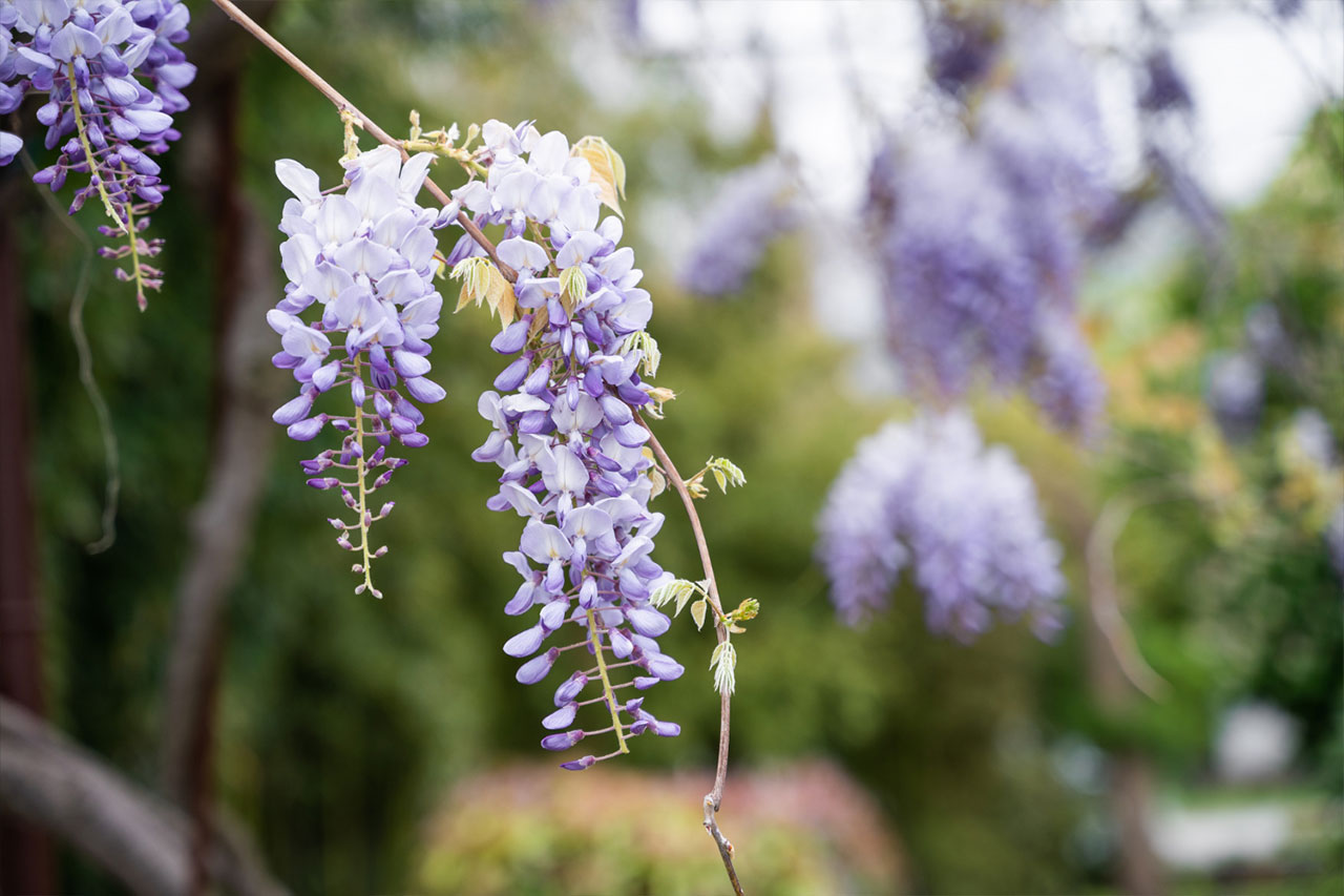 A Japanese wisteria with generous lilac-blue racemes that fall in elegant curtains, turning arches and pergolas into a springtime spectacle. It brings a romantic, slightly parkland feel to the garden, creating a living ceiling of flower that looks magical when viewed from beneath.