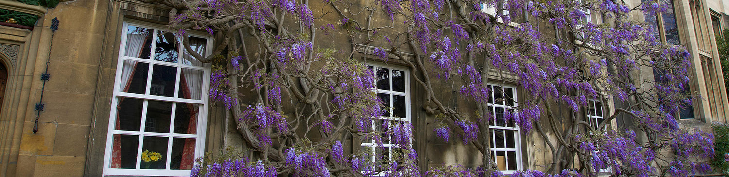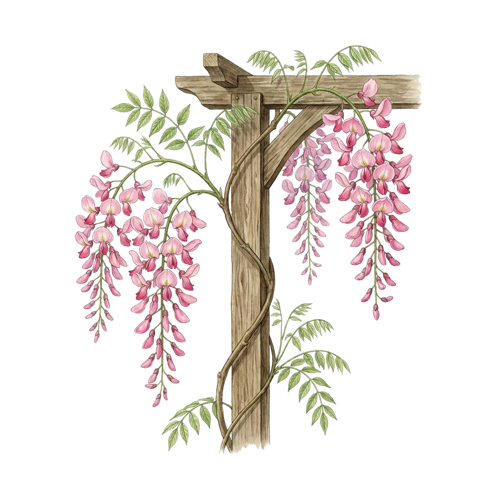 A softer, blush-pink wisteria that feels more pastel and dreamy, with flower curtains that look luminous in gentle light. It’s beautiful trained over arches and pergolas near seating, bringing classic wisteria grandeur but with a more delicate, romantic colour note that suits cottage and courtyard gardens alike.